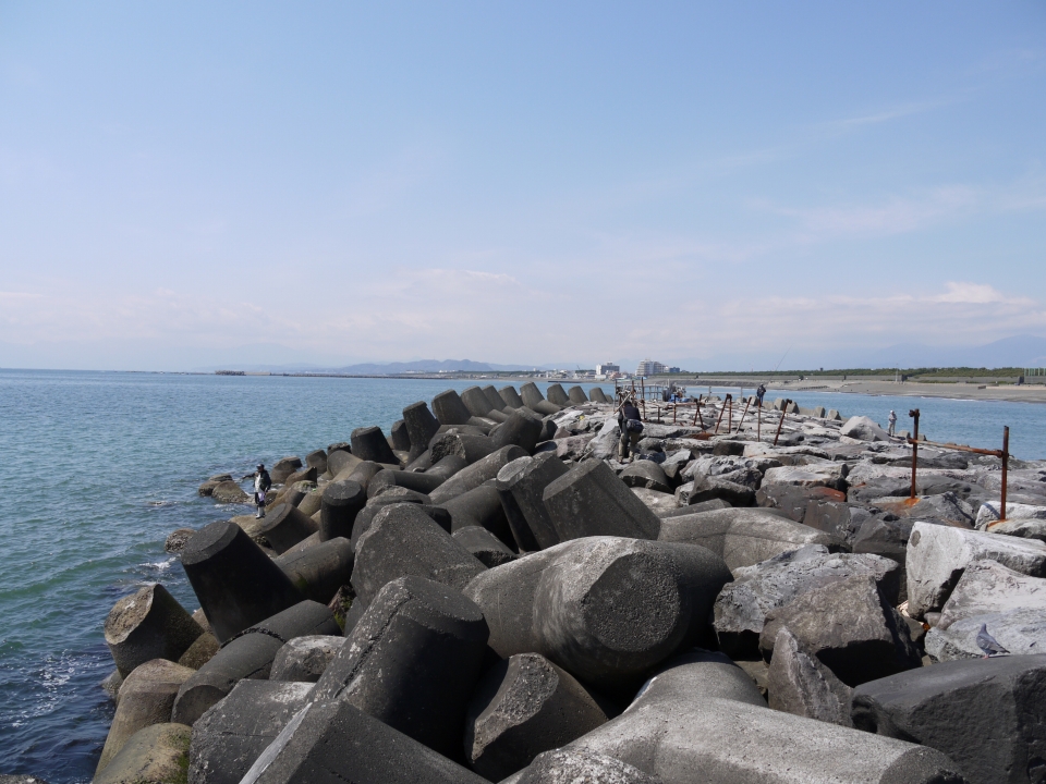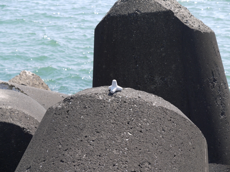 ▼波にさらわれそうになるテトラ