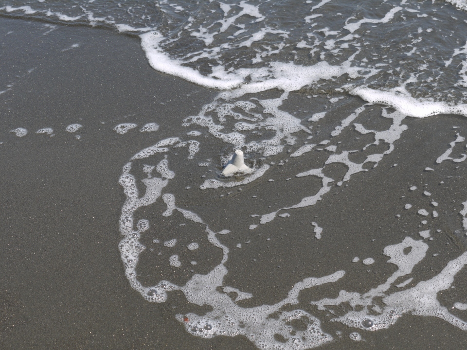 しっかり動かず。周りの砂はさらわれて若干沈み気味。