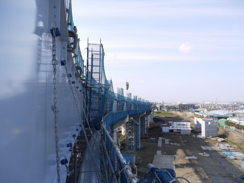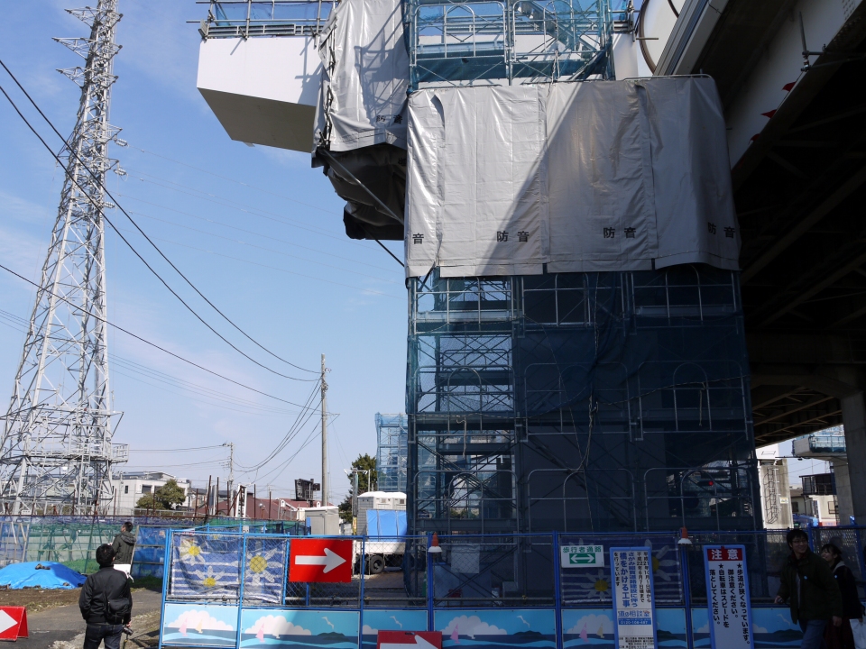 仮設足場、カラーコーン。今まさに造ってる感漂う風景。