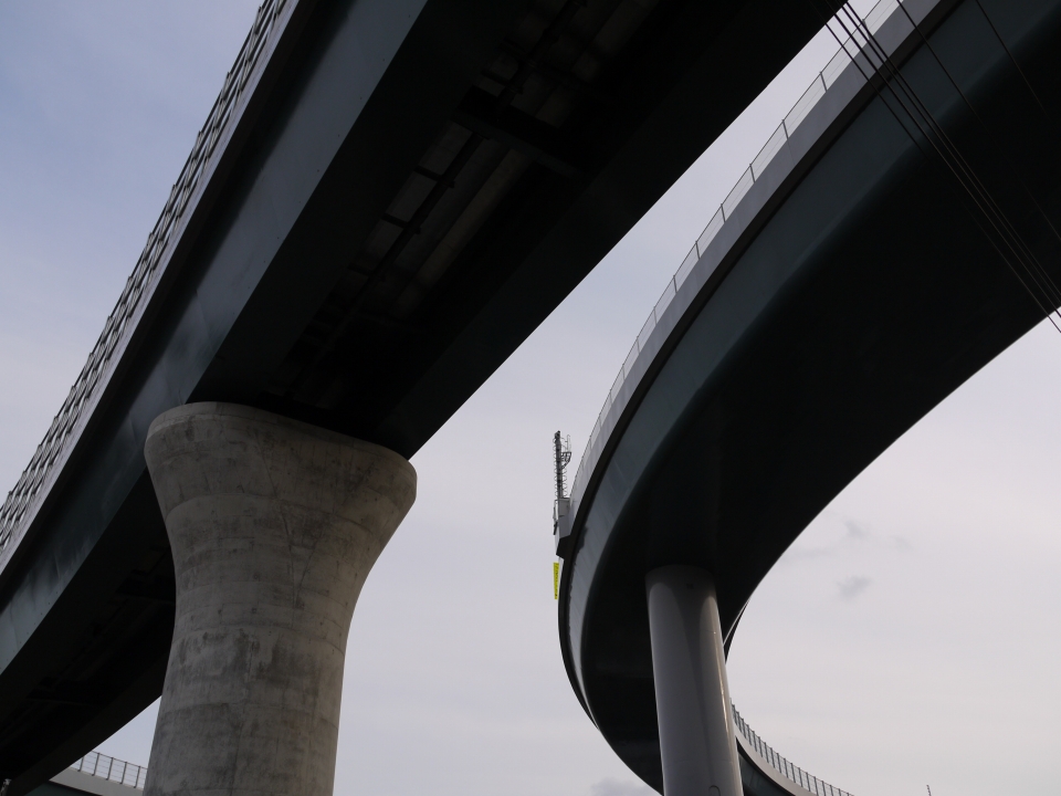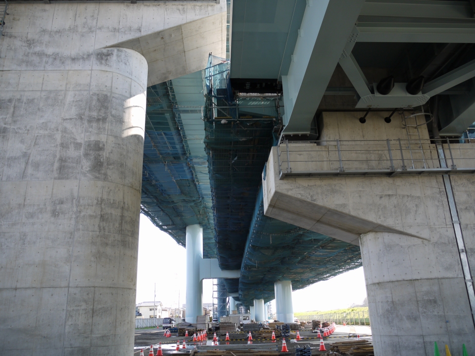 場所によって橋脚がコンクリートだったり、鋼鉄だったり。