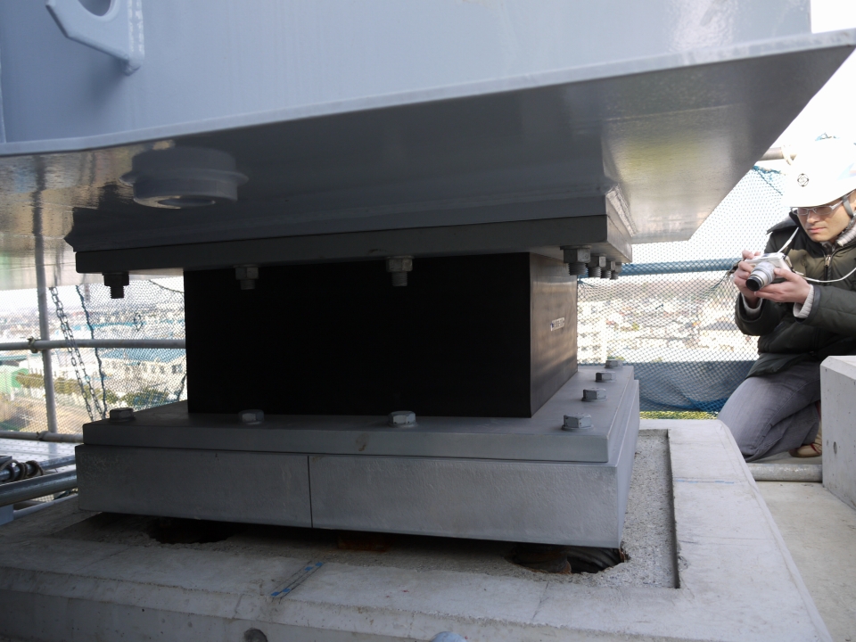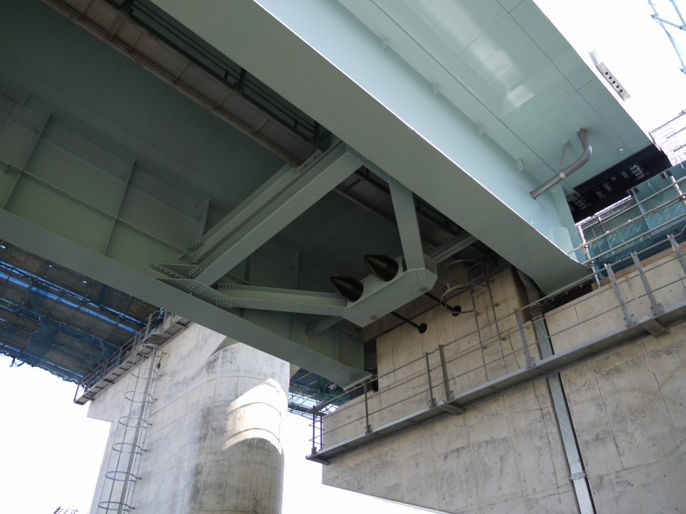 ▼中央に見える三角錐なモノは落橋防止装置