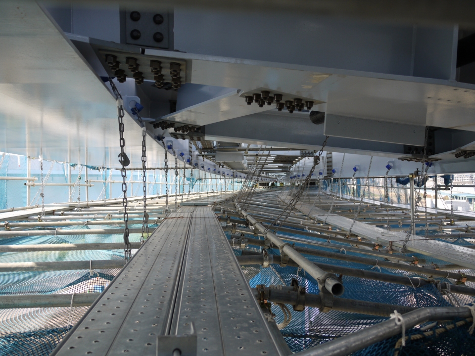 ▼今まさに橋桁で工事をされています。